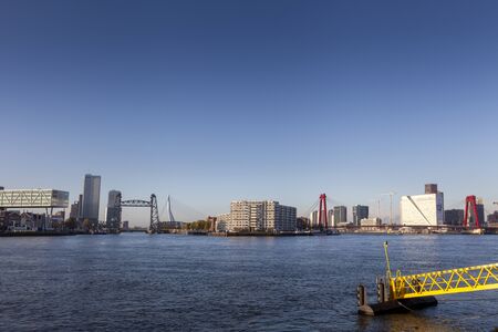 Rotterdam, Netherlands. Cityscape and river Maas near the harbor. High buildings and Euromast on the background