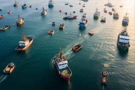 Above the Bay: Captivating Perspectives of Traditional Fishing Trawlers in Southern Hong Kong's Thriving Fishing Industry