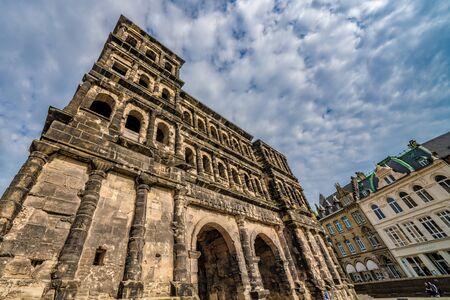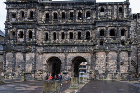 TRIER, GERMANY - SEPTEMBER 22: This is Porta Nigra an historic city gate built in the 2nd century by the Roman empire on September 22, 2019 in Trier