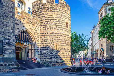 Bonn, Germany, August 23, 2019: Sterntor or Star Gate medieval stone fortification building in historical city centre, North Rhine-Westphalia region