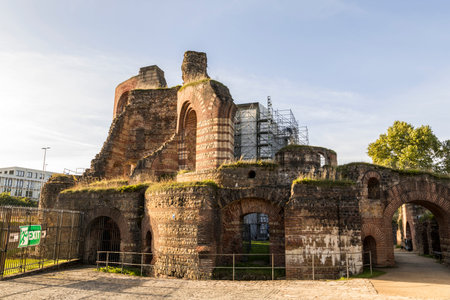 TRIER, GERMANY, AUGUST 14, 2018: People strolling through ruins of Kaiserthermen in Trier, Germany