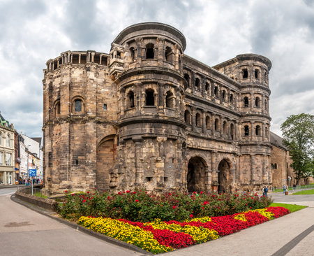 TRIER, GERMANY - AUG 4, 2022: The Porta Nigra, a Roman city gate in Trier, Germany, in the state of Rhineland-Palatinate, Germany