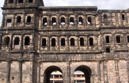 The Roman City wall Porta Nigra (Black Gate) in Trier, Germany. For a century after AD 286, Trier was the favored residence of Roman emperors.