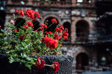 Old buildings on a street of Verona old town in a sunny day, Italy. Travel destination in Italy.