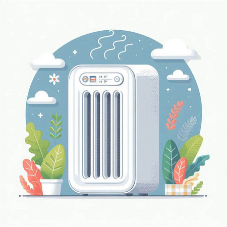 Sleek appliances at work smart purifier filtering air as AC keeps climate balanced
