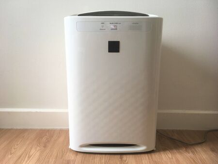 air purifier a living room, air cleaner removing fine dust in house. protect PM 2.5 dust and air pollution concept
