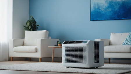 This image showcases a stylish portable air conditioner designed for modern living spaces. It offers efficient cooling and enhances indoor comfort, perfectly fitting into various home decors.