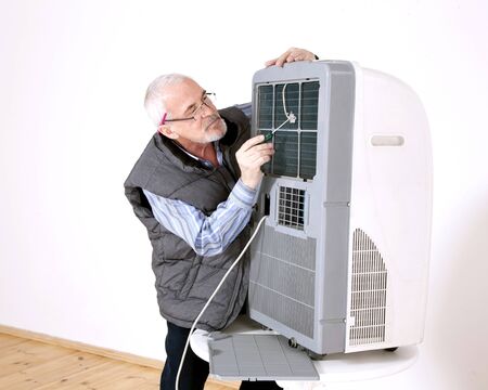 Black mobile air conditioning unit, small air heat pump isolated - Hot