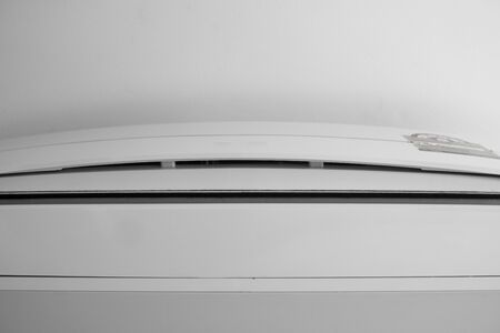 Air conditioner mounted on a white wall in the living room or bedroom. Indooor comfort temperature. Health concepts and energy savings.