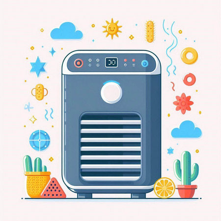 Contemporary solar-powered air purifier designed for a vibrant environment. Efficient filtration technology promotes a clean atmosphere, enhancing indoor air quality.