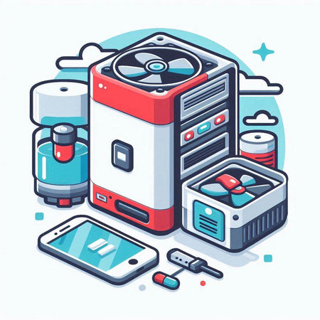 Modern Portable Handheld Fan on Colorful Blue and Yellow Background for Summer Coolness