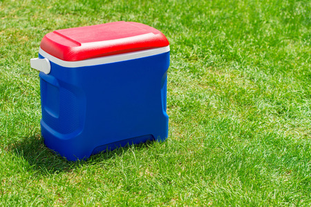 Picnic cooler box in Australian flag colors on grass