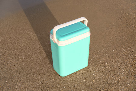 Modern beach cooler on sea shore