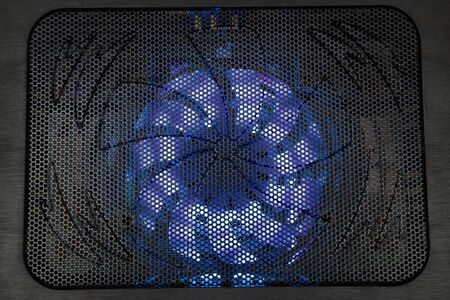 Notebook cooling fan with blue backlight.View from above.