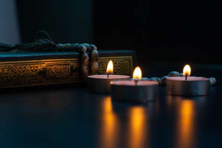 Quran in the mosque at night and light from the candle