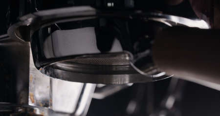 Close-up part of a coffee machine, a holder for coffee.