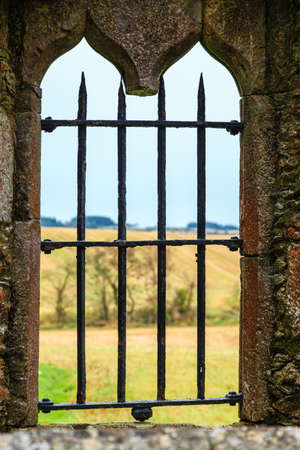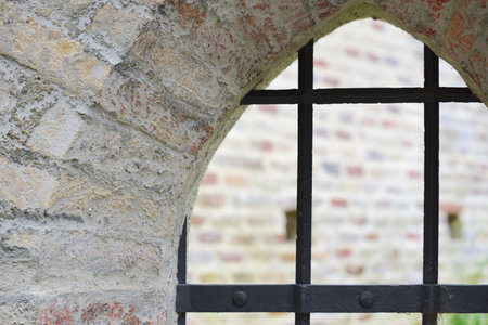barred window detail at the Mont Saint Michel Abbey in Lower Normandy France