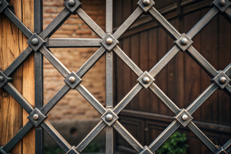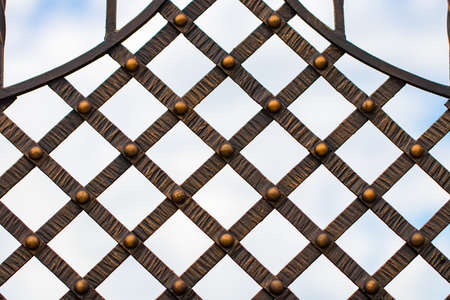 Forged metal gates with diamond-shaped figures. Against the background of the inner grille.