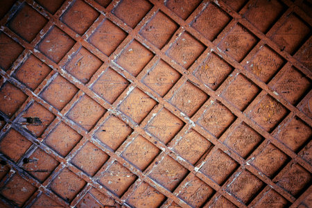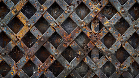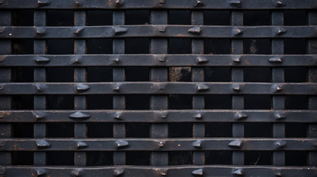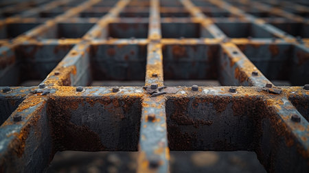 A textured surface of heavy metal grating showcasing the rough and rugged appearance of an industrial setting