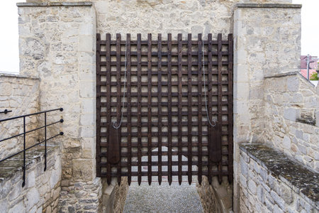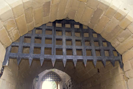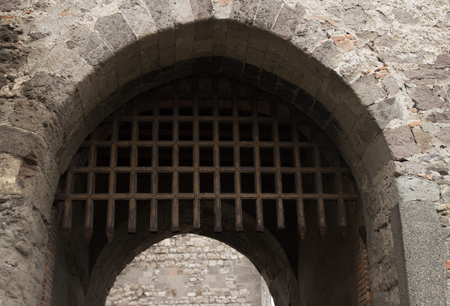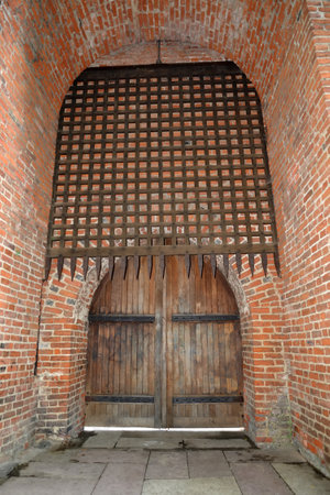 Castle fortress gate with lowering grid (13th century). Frombork, Poland