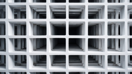 Layers of Geometric Patterns in White Concrete Grid Structure with Depth Perception Showcasing Architectural Design and Modern Aesthetic Appeal