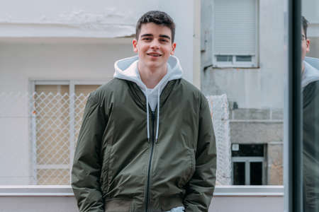 Handsome fashionable American man wearing stylish glasses smiling stylish young man in urban setting in the city