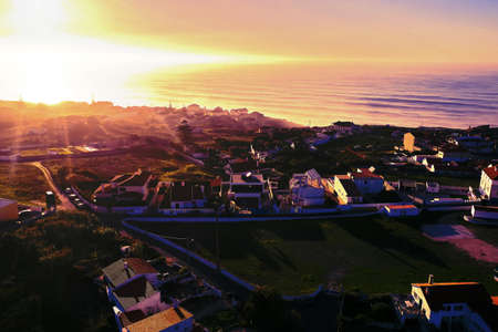 Beautiful coastal view of Praia Azenhas do Mar near Sintra, Lisbon. Praia Azenhas do Mar is one of the best beach in Portugal.