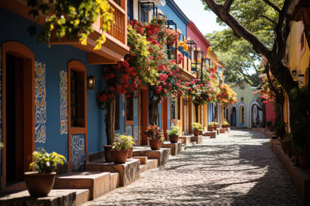 Colonial facade and art in Porto Seguro Museum, Brazil., generative AI