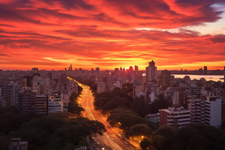 beautiful sunset over the city of shanghai china, Sunset over Buenos Aires, Argentina, AI Generated