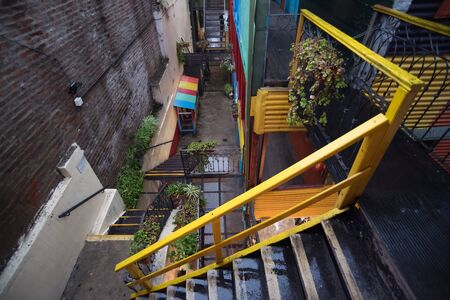 Buenos Aires, Argentina - July 31 2016: Rainy days in the neighborhood of La Boca. It is the backyard of a typical house.