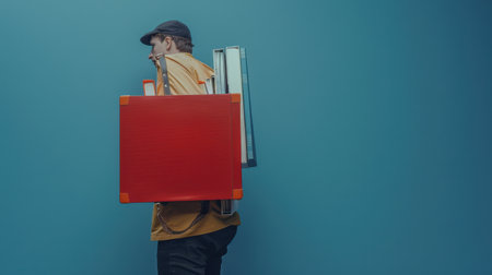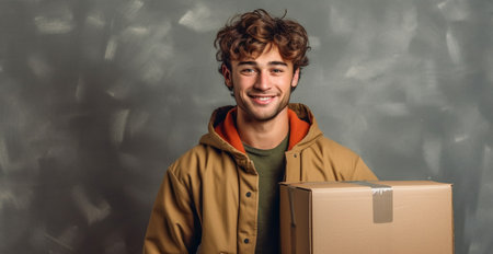 Young mailman delicately transporting a fragile package for safe delivery to its destination