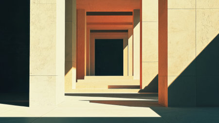 Arches showing endless arches of stone in a sunlit corridor with dramatic shadows keywords: architecture, arch, arcade, corridor, building, stone,...