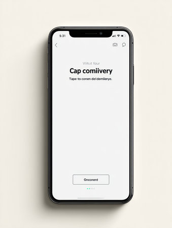 Mobile phone showing an app on a white surface displays modern technology and interface design, showcasing user interaction.