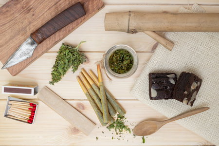weed marijuana hashish roll wood background herb health medicine alternative coffee
