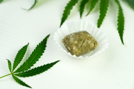 Homemade hemp jelly candies with CBD extract. CBD Edibles, CBD-Infused Snacks, hemp dessert cannabis.
