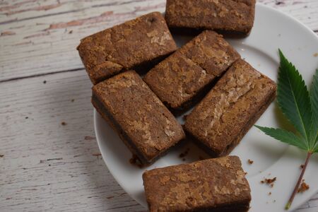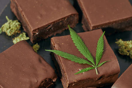 Brownies and cannabis leaf.