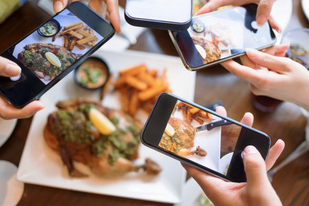 Cellphone with food picture for social media.