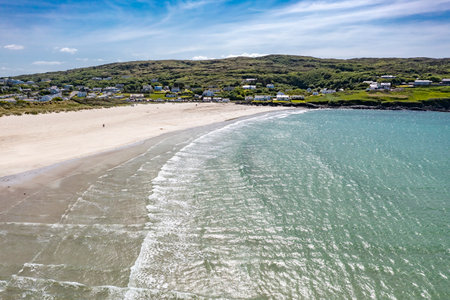 County Donegal in Ireland. Drone point of view. Summer view of Muckross Bay Beach near Killybegs. Part of Wild Atlantic Way.