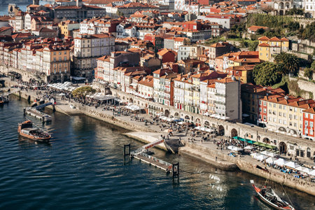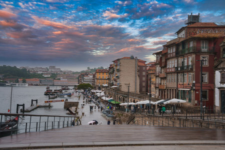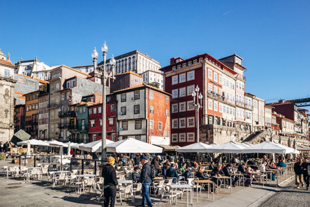 Porto, Portugal - December 28, 2024: The famous and picturesque Ribeira district, known for its colorful houses and vibrant riverside atmosphere