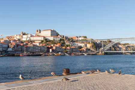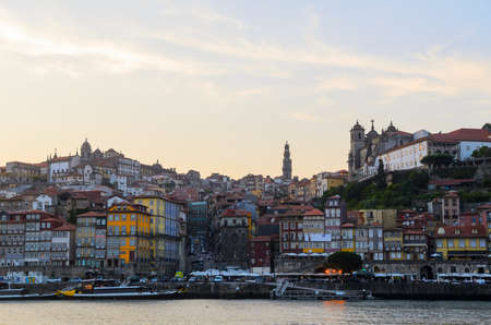 Landscape view on the riverside with beautiful old buildings in Porto city, Portugal