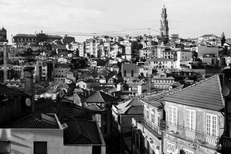 View of the city of Porto: houses around Riber and church Klerigush (Igreja dos Clerigos), Portugal