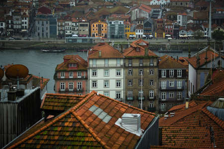 Roofs of houses in Porto, view of the Douro River and the Vila Nova de Gaia in Porto, Portugal. Porto is one of the most popular tourist destinations in Europe.