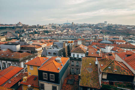 PORTO, PORTUGAL - February 6, 2022: Panoramic view of the rooftop of Porto, Portugal.