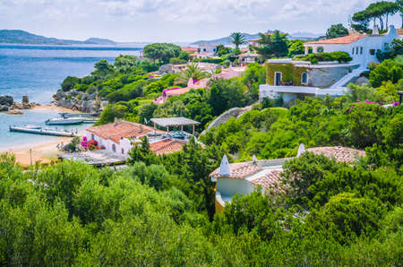 Beautiful costline with white houses and tile roofs of Porto Rafael, Palau, Sardinia, Italy