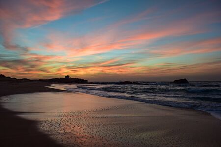 Amazing colorful african evening at the atlantic coast beach of Oualidia, Morocco