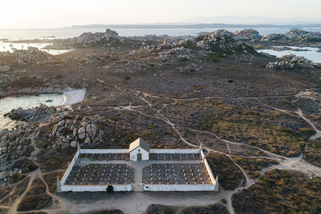 The cemetery on the main island of the Lavezzi Archipelago, Corsica island in background, France