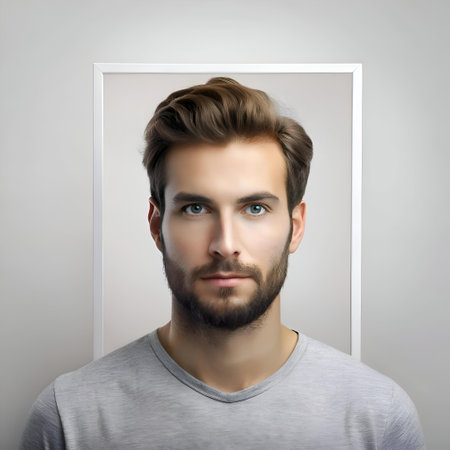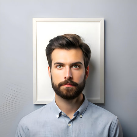 A clean and minimalist mockup featuring a young man with a beard. Ideal for profile pictures. branding. and social media. Perfect for personal or business use.