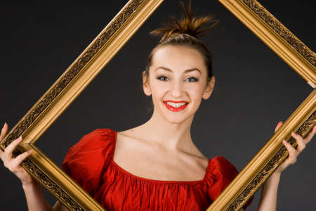 pretty girl with golden frame