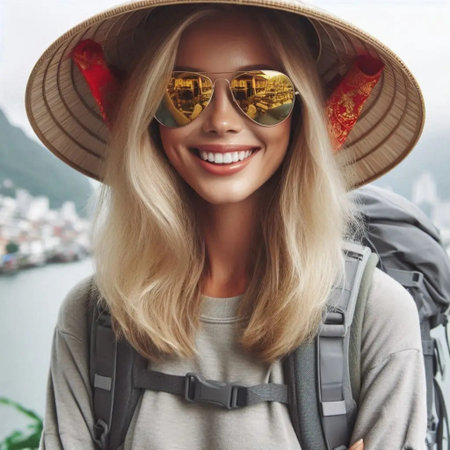 Local Hospitality: Welcoming Grin in Touristy Setting. Generative AI