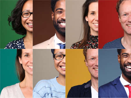 Diverse Group Headshots Collage Featuring Multiple Smiling Faces. Concept Group Portraits, Diversity, Smiling Faces, Collage, Headshots